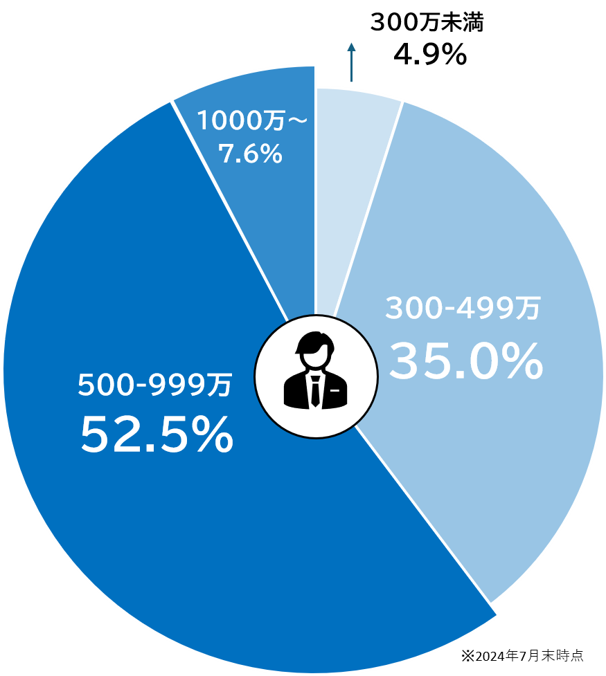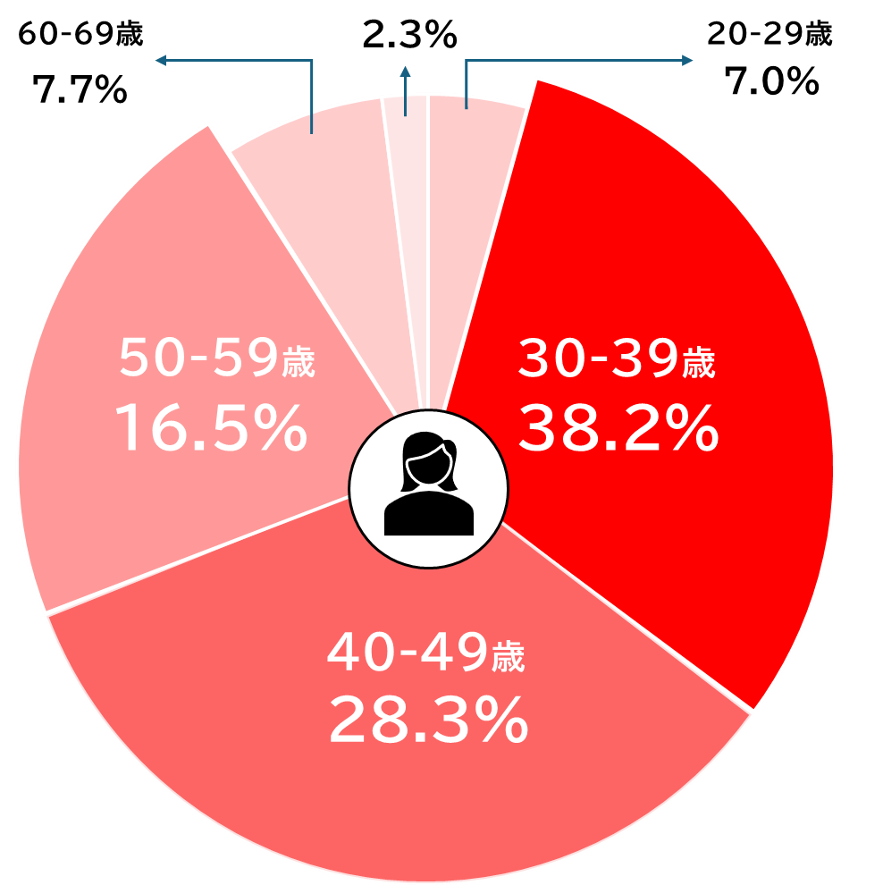 年収500万円以上の男性が60%以上を占め、安定した収入の方が多く活動されています。