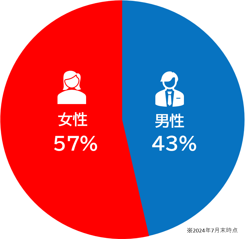 男女のバランスが取れており、お相手探しがスムーズに行える比率です。