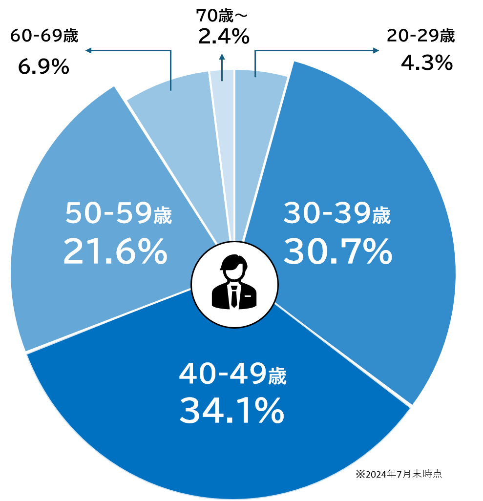 30代から50代を中心に、若年層、中高年層、シニア層といった幅広い年代の方々がご活動されています。